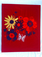 サイズは40cm x 40cm。ハルさんち〜の缶バッチとタッセルのチャーム付きです☆