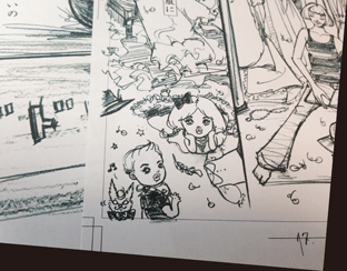 「裸のアヌーシュカ」の続編として描いているカフェの漫画3つ目の展示です。